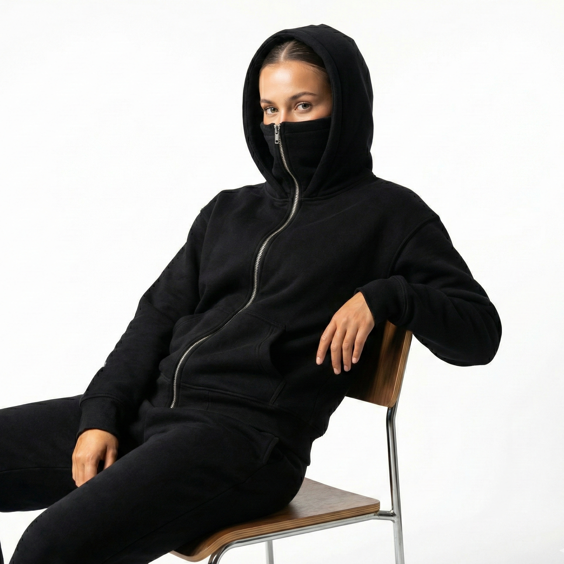 Elevate your style and comfort with this versatile hoodie, featuring a practical mask for added convenience. It's perfect for layering in cooler weather while making a fashion statement.