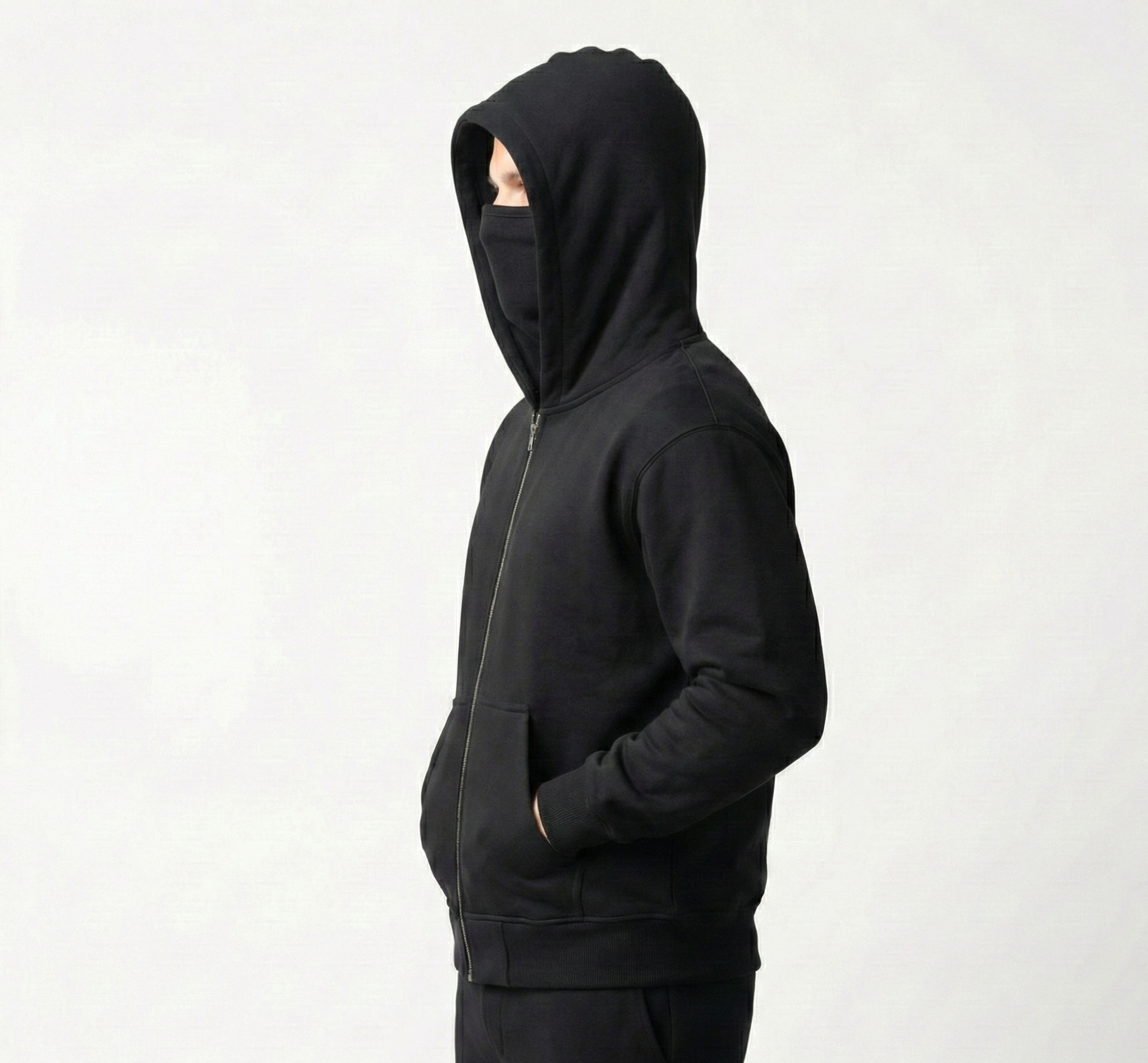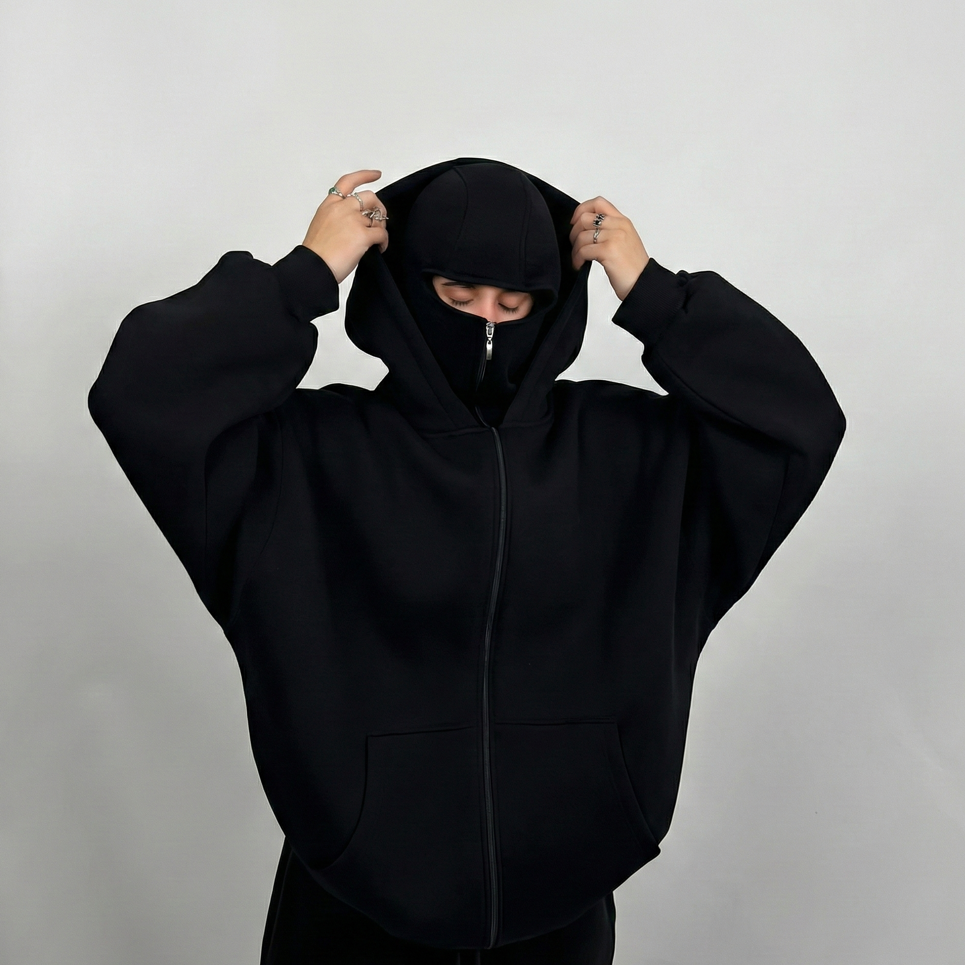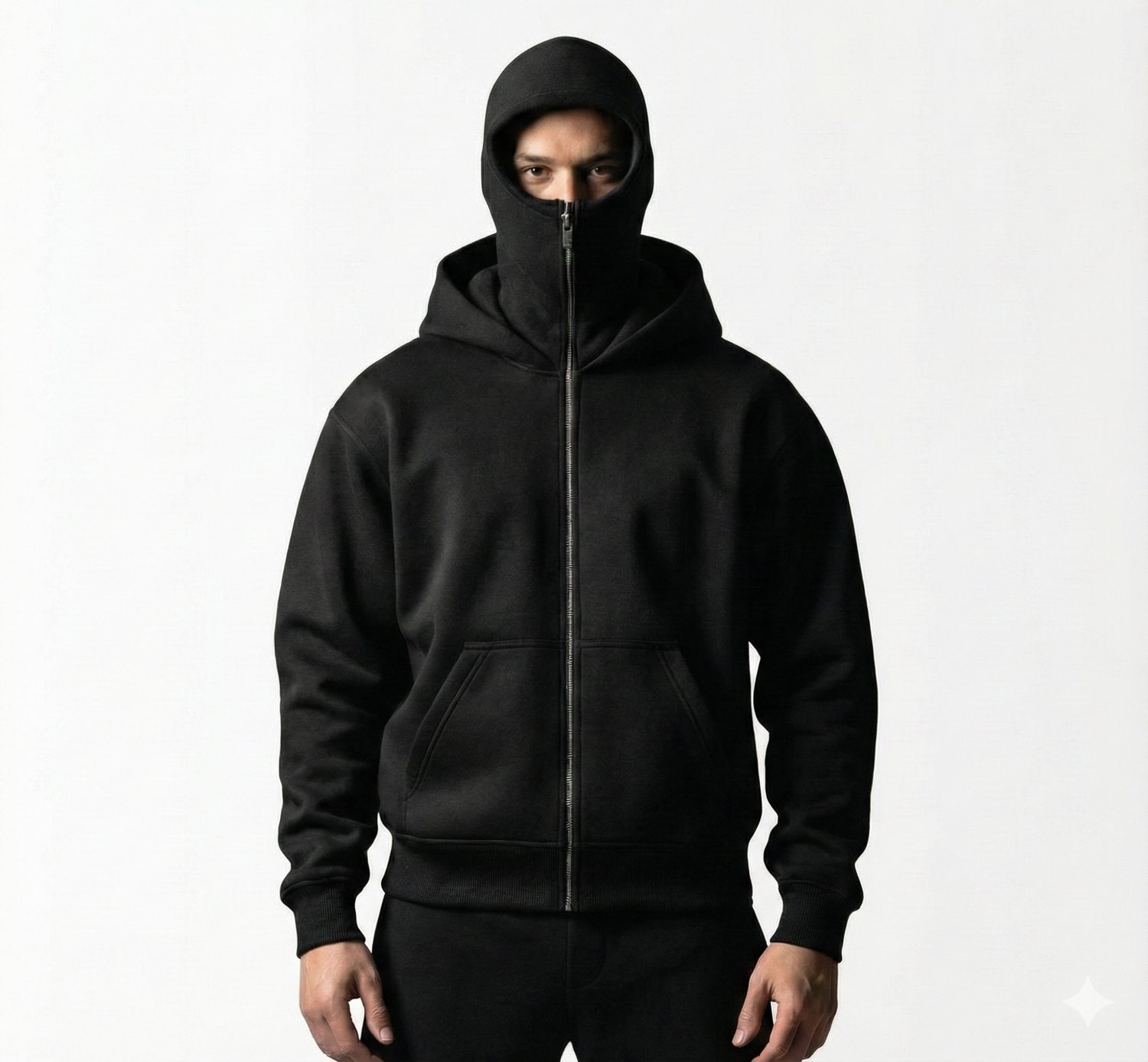 Crafted from premium 400 GSM heavyweight fleece, this hoodie delivers unmatched warmth and comfort. The unique ninja hood design with functional zipper sets you apart.